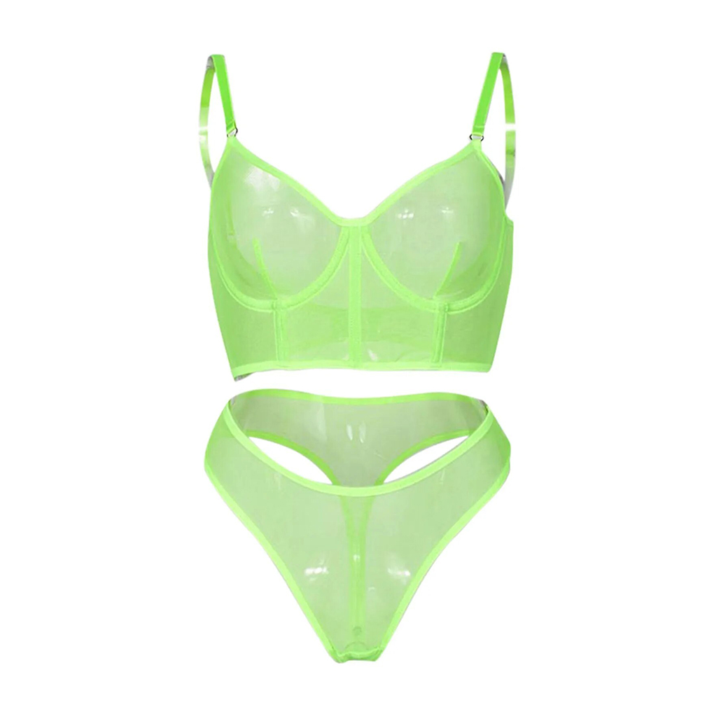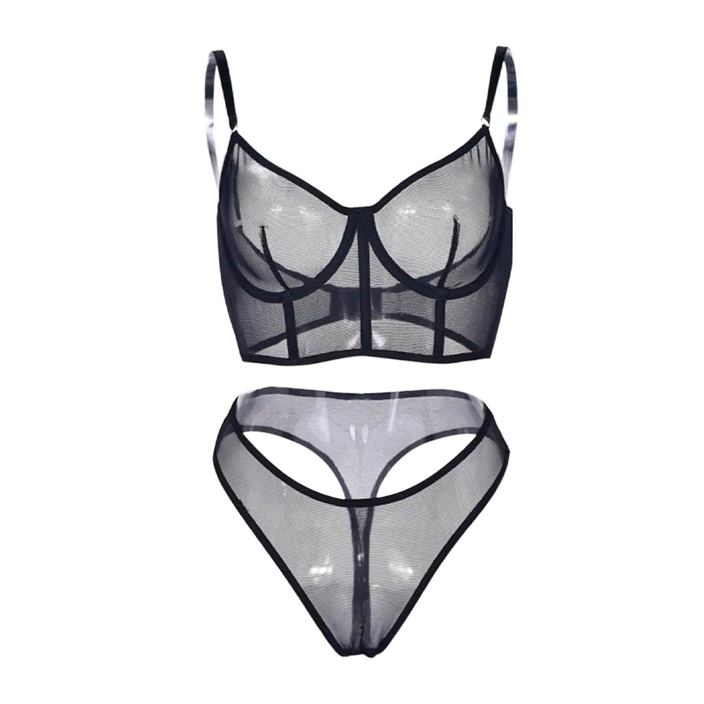 Conjunto Lingerie com Malha Transparente – 3 Cores