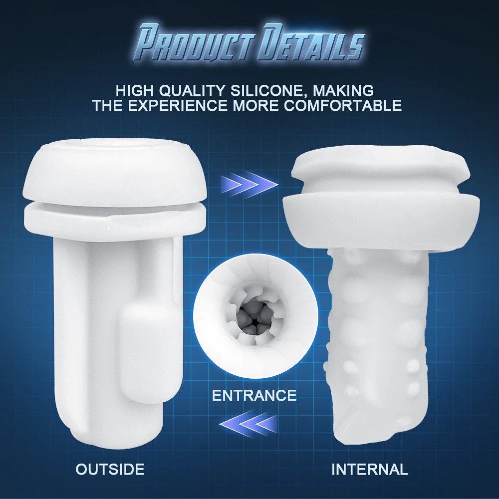 Um masturbador que ultiliza vibrações e sucções como modo de estimulação para o pênis, a sua textura de cyberskin ajuda na masturbação e assim, fazendo a ejaculação ser mais intensa.